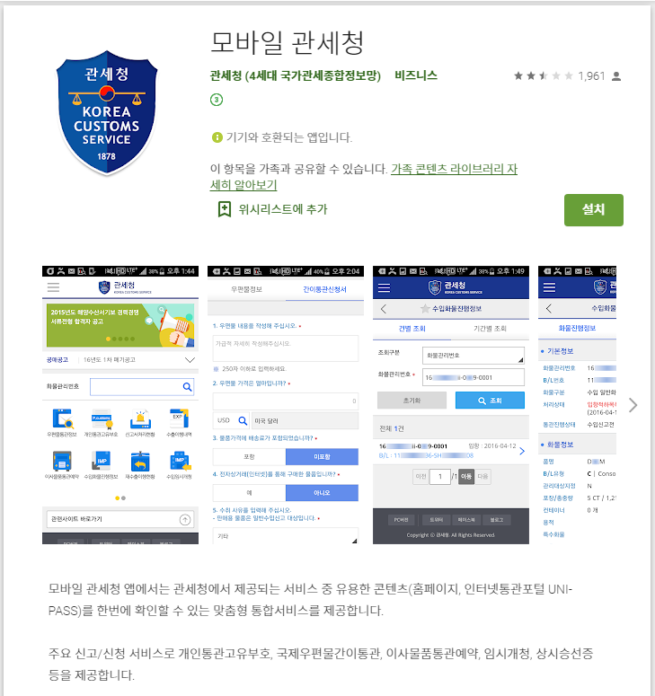 "모바일 관세청" 앱을 설치하여 개인통관고유부호 발급이 가능하다.
